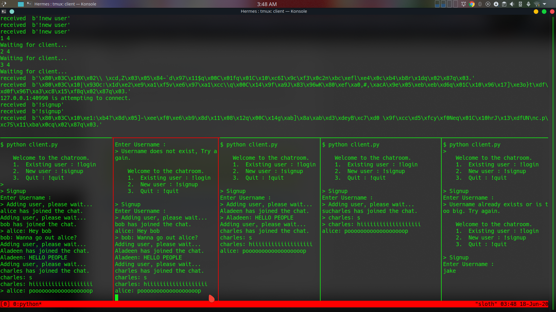 PORT = 33001For testing Tmux is great for managing multiple terminals.