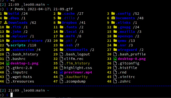 The expression ELN is crucial for clifm.1 It stands for Entry List Number and could be used for any operation involving filenames in the current directory. For example, given the following list of files: