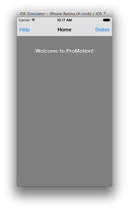 titleanymore. Instead, pass a string intotitle_image(it'll fetch the image for you and create a UIImageView) or pass any arbitrary view intotitle_view. Now,titleonly takes a string title. on_createhas been renamedscreen_initto avoid confusion with Android'sonCreatemethod. It may be reintroduced in a future version of ProMotion as an alias ofonCreate. We recommend usingon_initinstead.set_nav_bar_right_buttonandset_nav_bar_left_buttonhave been removed. Useset_nav_bar_button :rightand:leftinstead.- Added