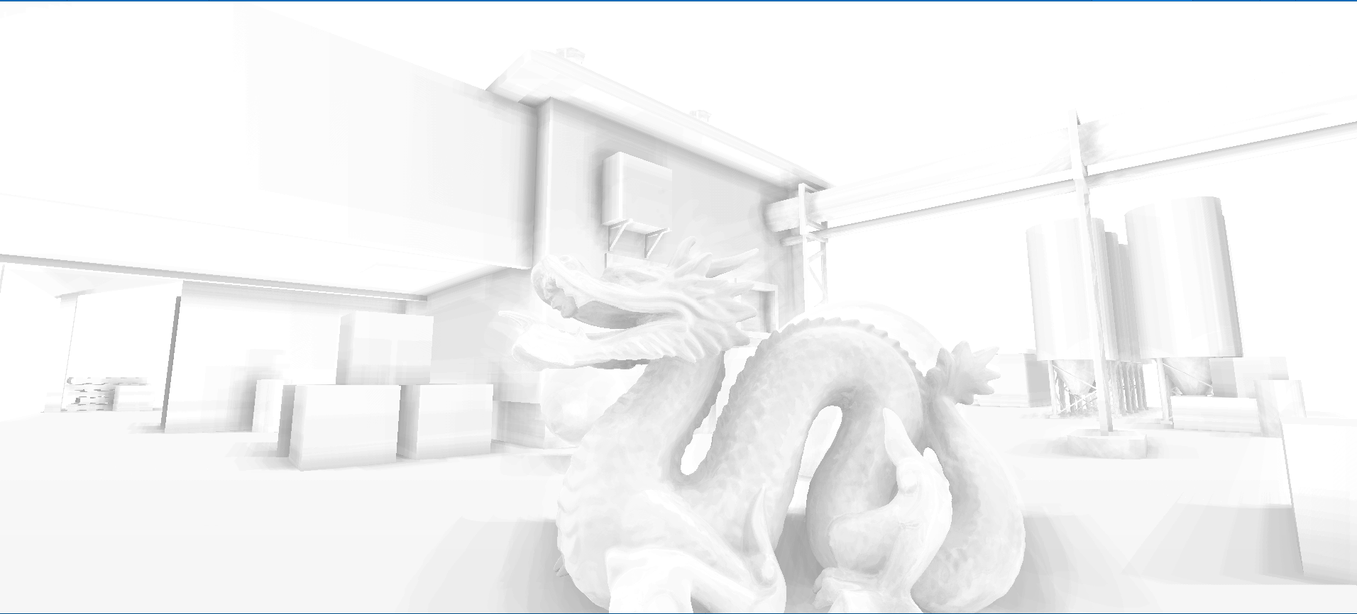 黑:当前计算样本 蓝:样本法向量 白、灰:采样点(灰色:被遮挡点,深度大于周围,据此判断最终AO强度)