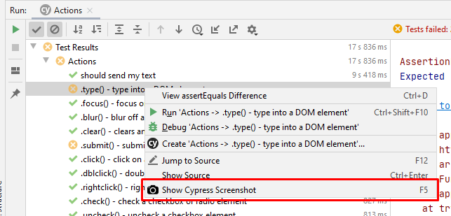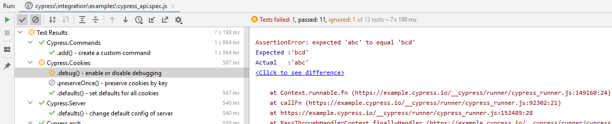 Notice that cypress-intellij-reporter introduces mocha dependency that enables the mocha test framework in IDEA automatically. So please do not confuse Cypress and Mocha run types: