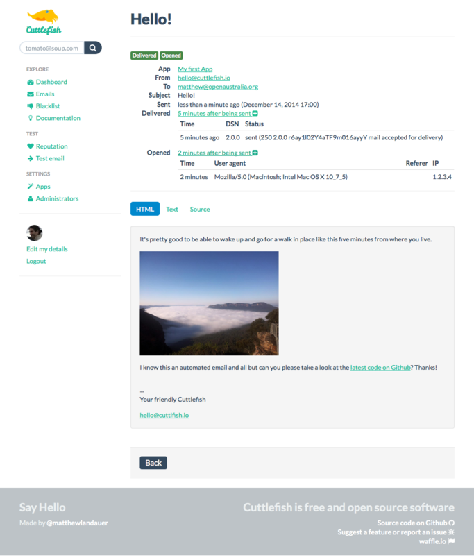Cuttlefish is in beta. It's been used in production by OpenAustralia Foundation's projects for many years and sends over a million emails per month.