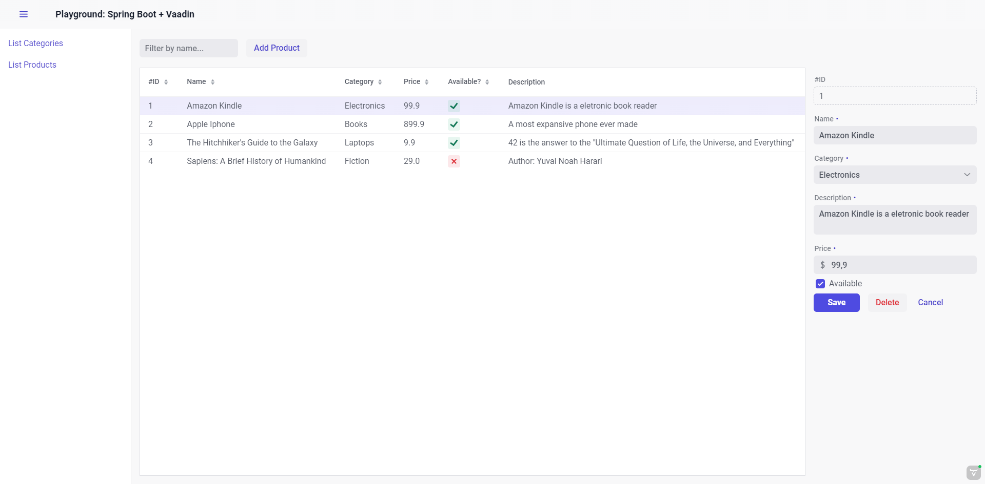Playground-Spring is an application developed with Spring Boot, JPA, Spring Security, and Vaadin for the frontend.