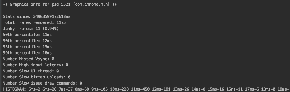 python sample/src/main/assets/fps.py命令。内部运行adb指令。自动滑动25次,打印卡帧比数据。 如下图: