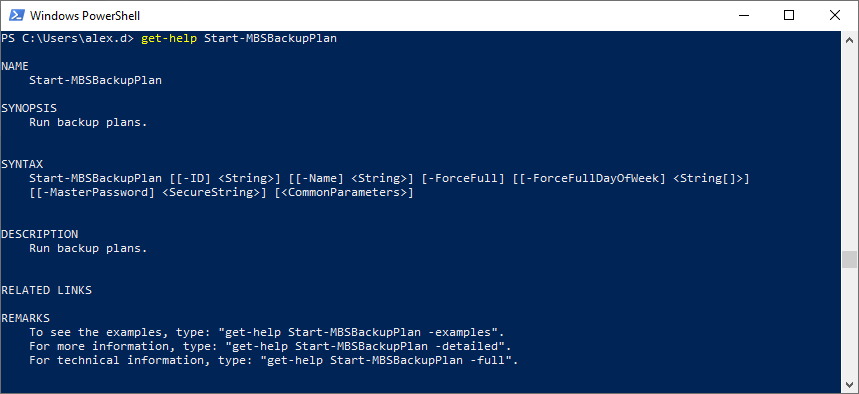 Get-Command -Module msp360Get-Help Start-MBSBackupPlan