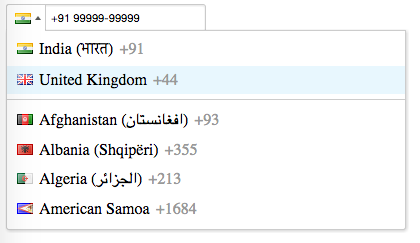 - Typing a different dial code will automatically update the displayed flag