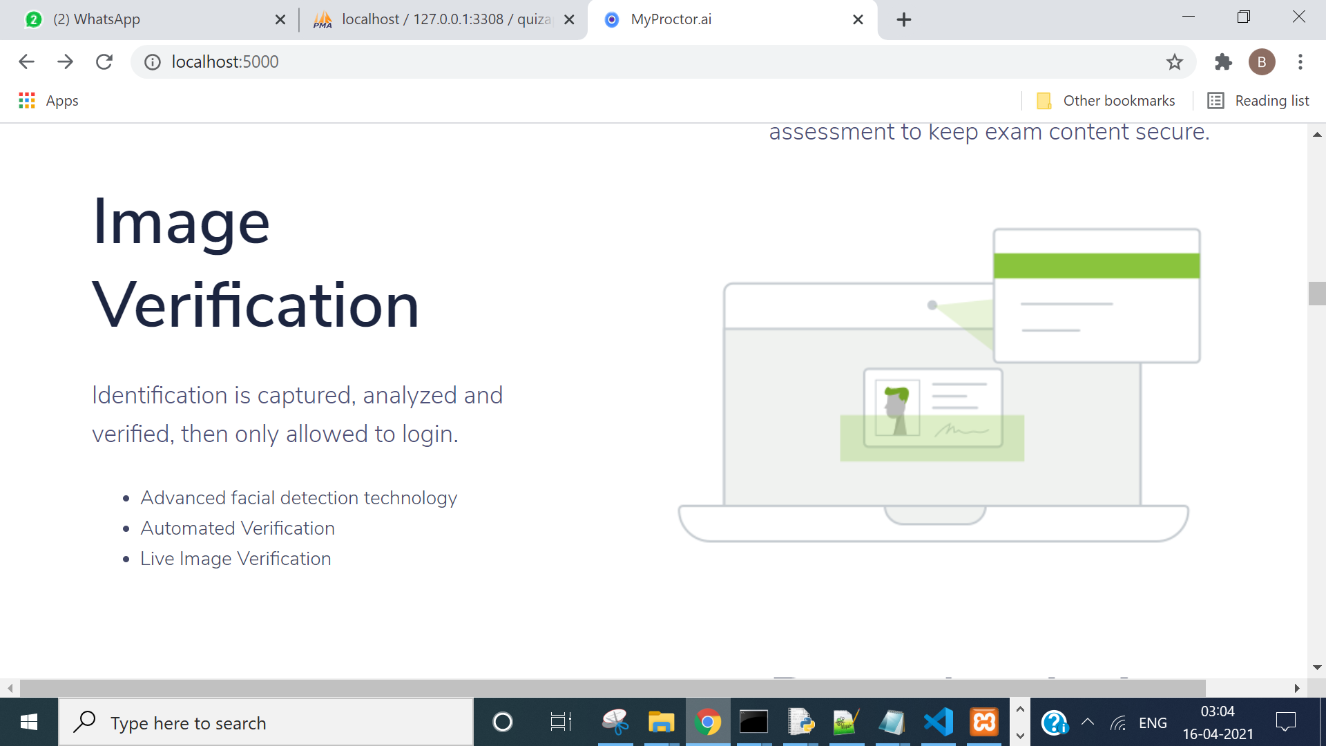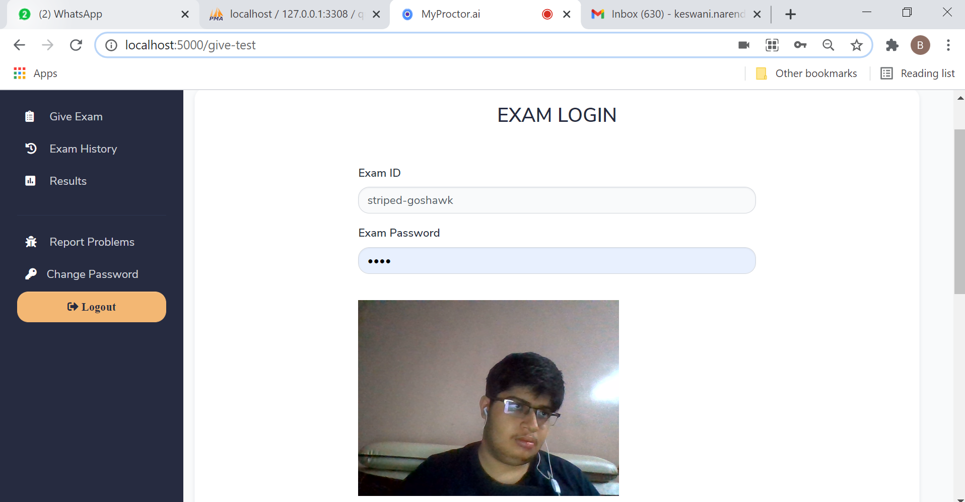- System will verify image of user at every time of login and also in exam using face recognition technology.