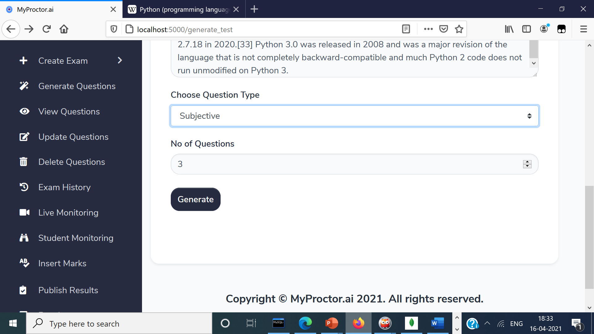 - Using AI , professor can generate questions & answers, the 2 types of questions & answer can be generated: objective & subjective.