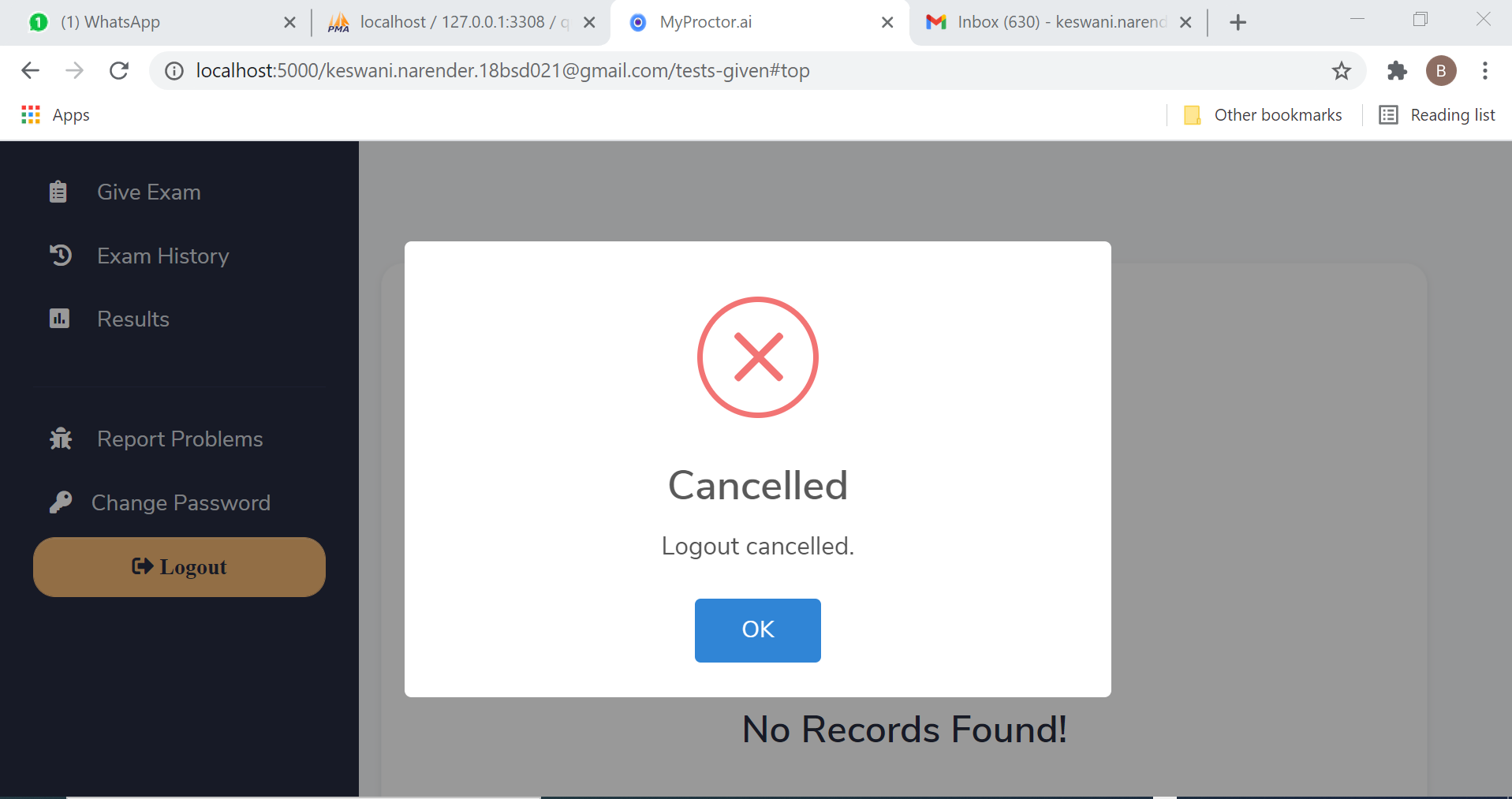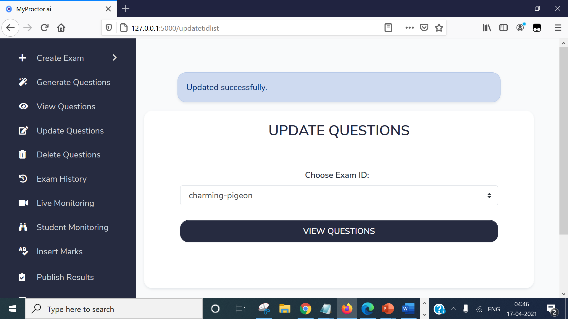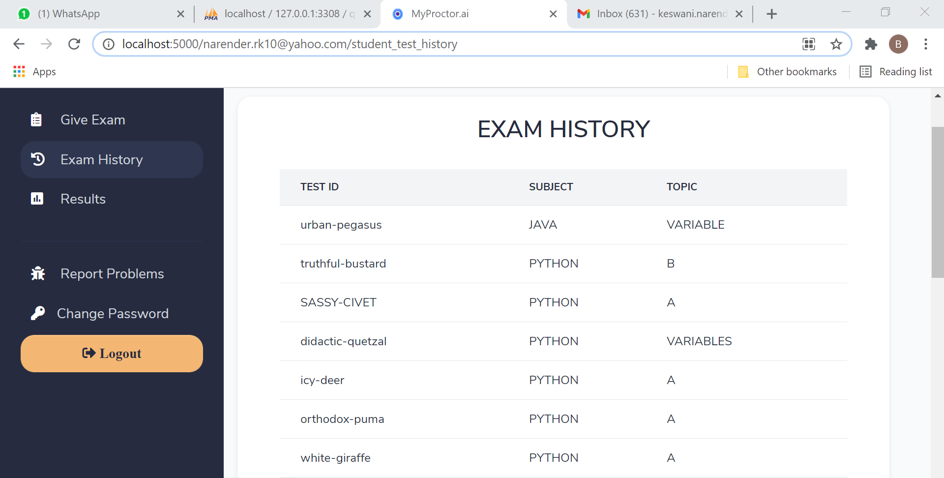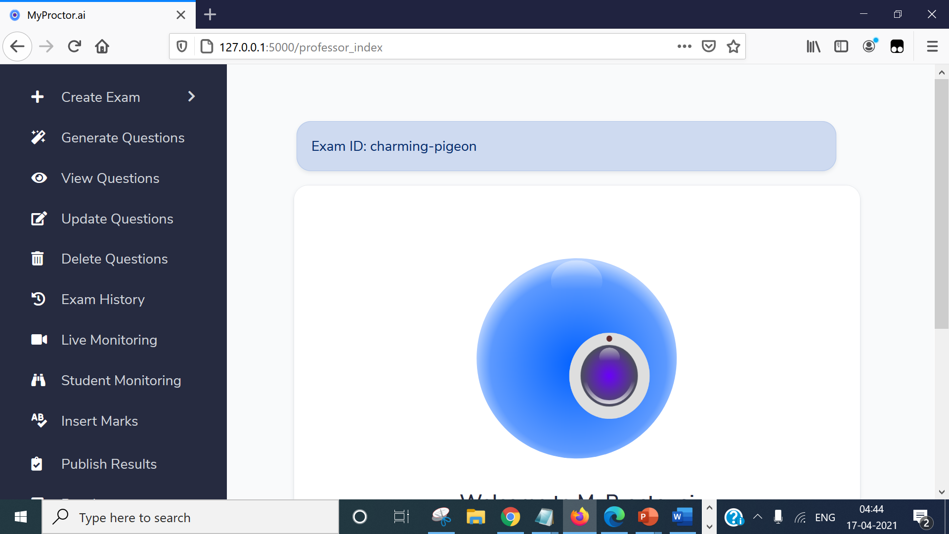 - Professor can view Live Monitoring of Exam & also can view proctoring logs of the students.