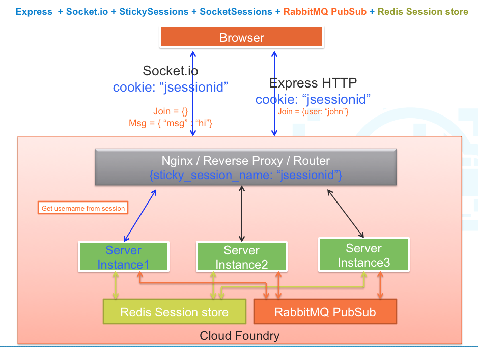 So, in this blog, we will start from Scaling Real-time Apps on Cloud Foundry Using Node.js and Redis and simply replace Redis with RabbitMQ pubsub.