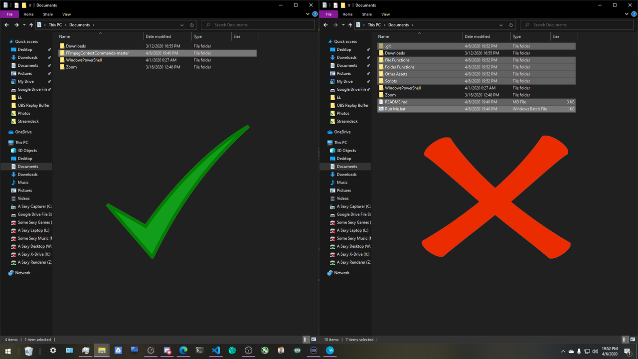 file and followed the resulting prompts, assuming there were no errors, the commands will have been added to your context menu when right clicking a file or folder (depending on the command) in Windows Explorer:
