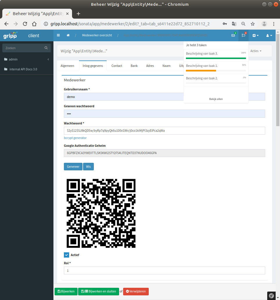 The application consumes the Gripp API as client but has various API server interfaces itself as well: