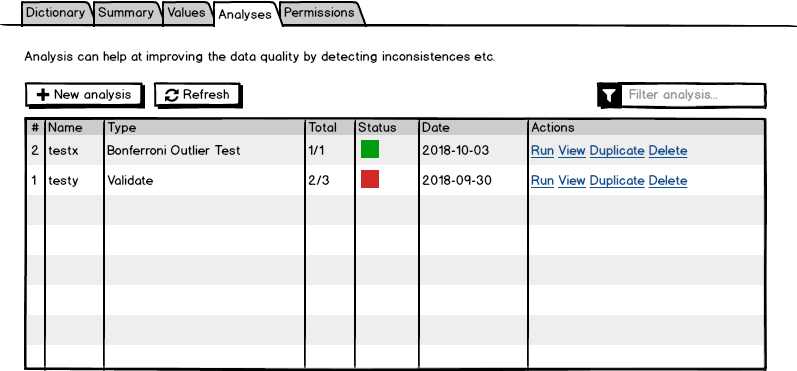 plugins and makes them available in the UI (list of plugins with their associated schema form) - user goes to a table page where he/she can find a new tab called "Analysis"