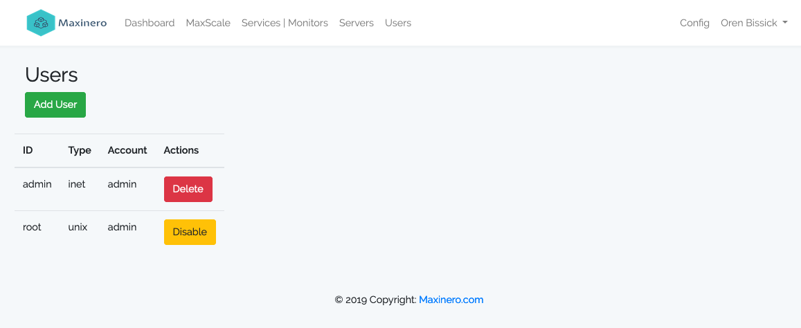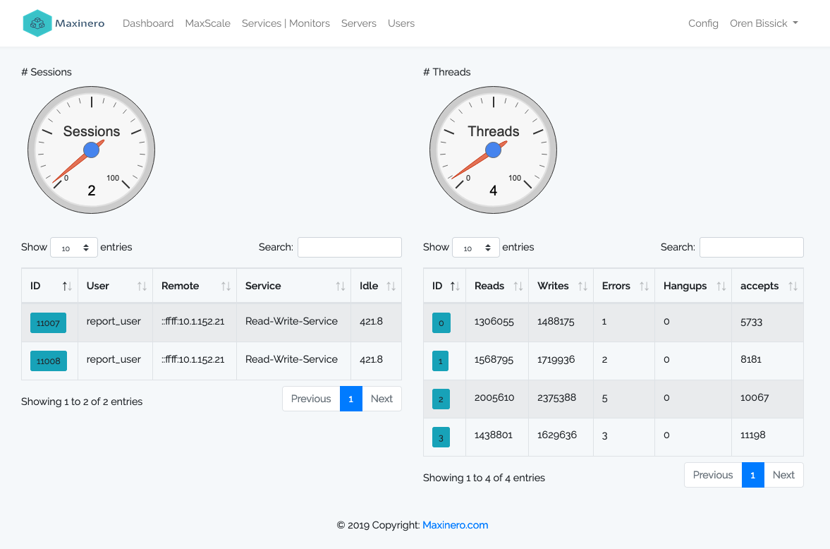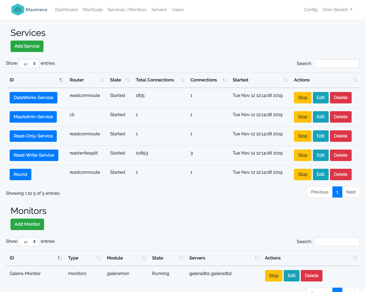 UI for administering MariaDB MaxScale server.