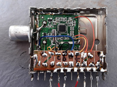 An integrated VHF/UHF tuner from MaxLinear, Inc. Taken from a DVB-T receiver and placed in a metallic box from a broken tuner. Information and examples.