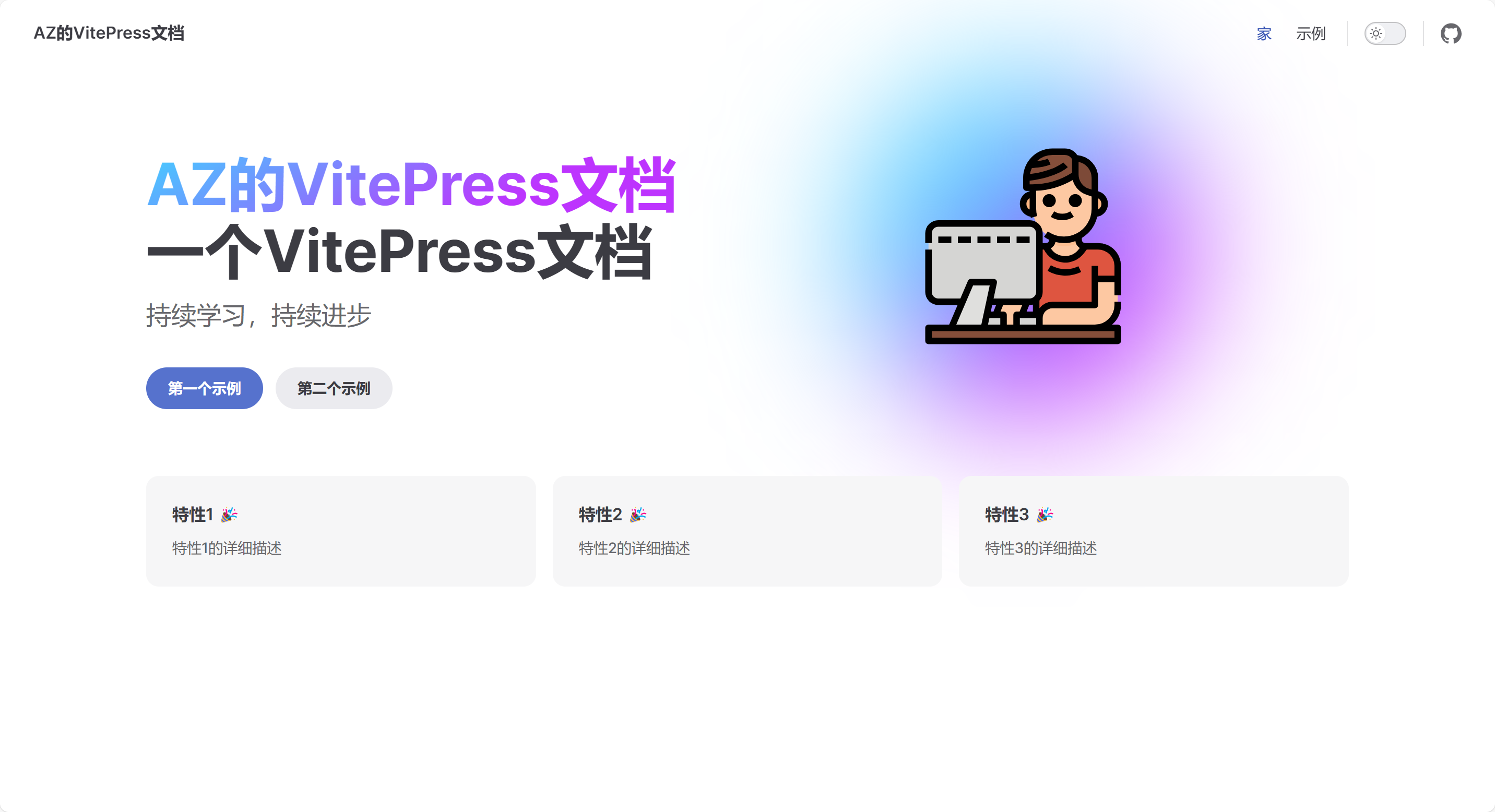需要说明的是,对于5这两个按钮,是可以跳转的,link指定路径,比如/api-example就是在项目根目录下找api-example.md这个文件