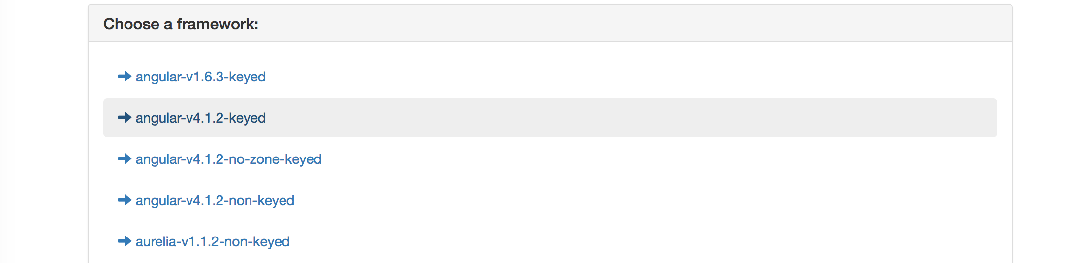 npm run isKeyedtest in the test driver otherwise they are erroneous. Not that this test might not be sufficient, but just necessary to be keyed (from time to time we find new loop holes). There's error #694 for such cases. - Using request animation frame calls in client code, especially when applied only for some benchmark operations, is considered bad style and gets note #796 applied. Note that frameworks are free to choose whether they use RAF of not.
