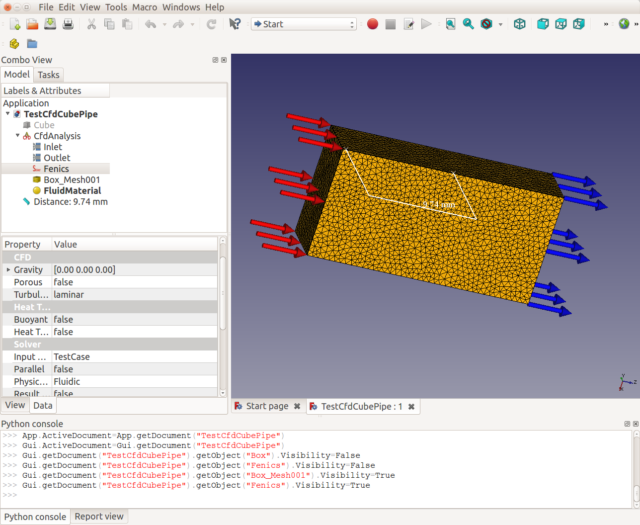 Meanwhile, FreeCAD developer joha2 has added mesh export function in FemWorkbench, once the boundary mesh can be exported, case setup for fenics solver will be write in FreeCAD workbench.