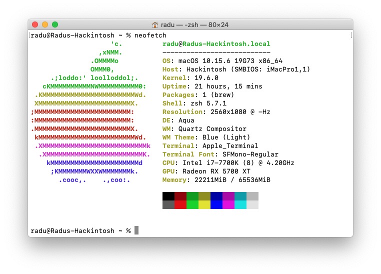 - Temperature monitoring for everything except GPU (no 5700xt temp support in VirtualSMC)