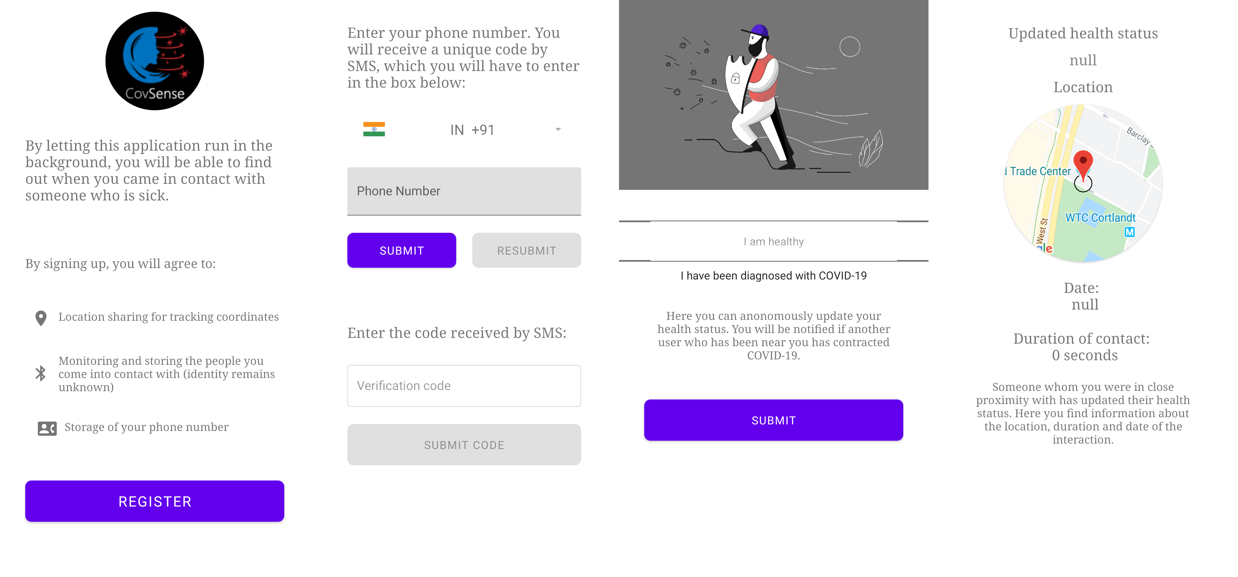 After you sign in, you get an OTP generated using Firebase Phone Authentication. After you login, the application starts a background service that constantly publishes and receives the Firestore Database UIDs, by using the Nearby Messages API from Google. When two devices are in close proximity (approximately 4 metres to 5 metres for Bluetooth + Sonar) their meetup is registered in Firestore.