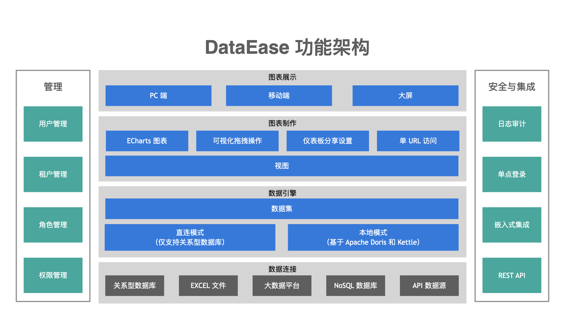 - 数据引擎:支持直连模式、本地模式(基于 Apache Doris / Kettle 实现);