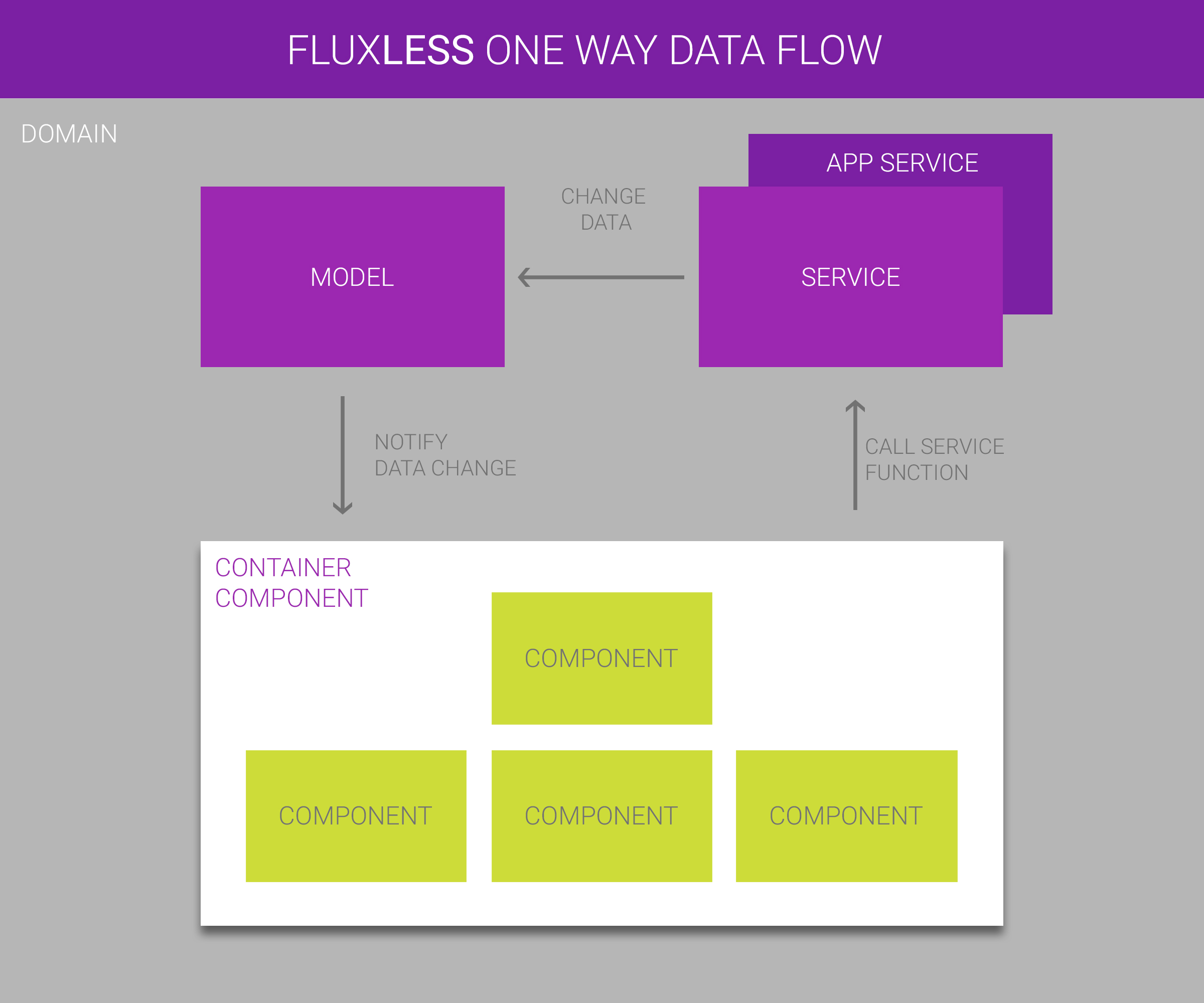 • FLUXless architecture - simple one way data flow (just components, services, models)