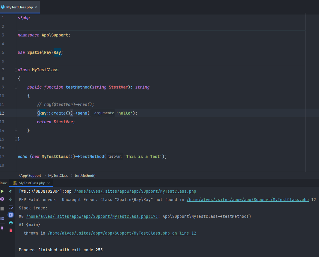 PHP Fatal error: Uncaught Error: Call to undefined function App\Support\ray()Am I missing something?