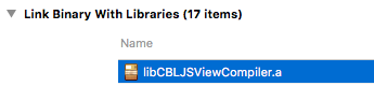 - So far so good! Next, you must install CBLRegisterJSViewCompiler.h and libCBLJSViewCompiler.a. You can download both components from here. Drag CBLRegisterJSViewCompiler.h into the couchbase-lite-ios Pod: