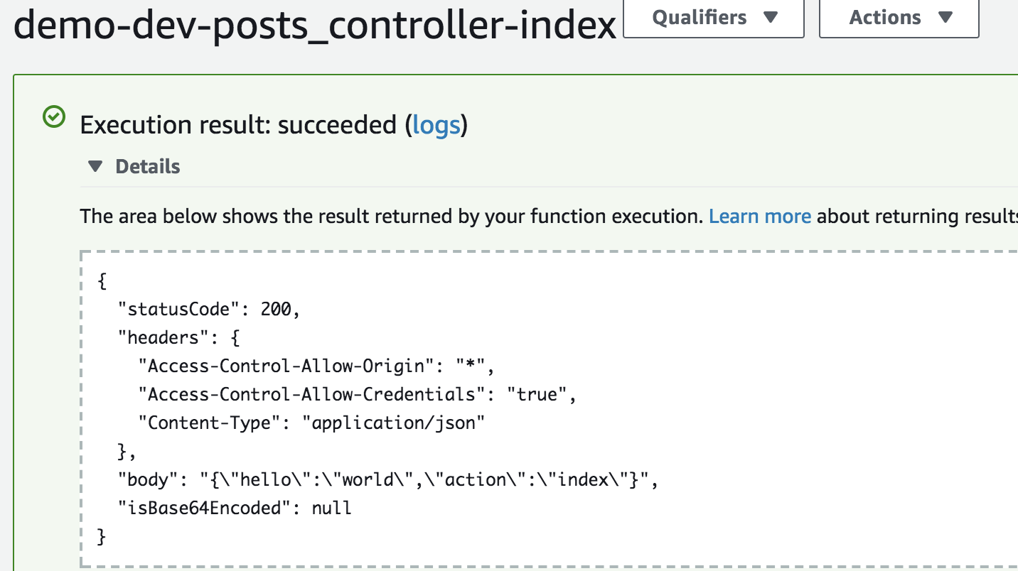 Jets creates Lambda functions for each public method in your controller. Here they are in the Lambda console: