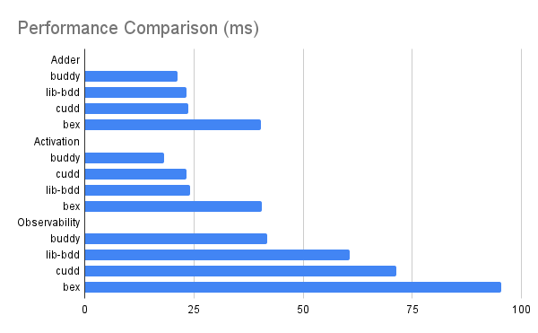 state-of-the-art BDD libraries (bex, cudd and buddy). In our experience,