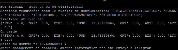 Le bot utilise l'API de la plateforme d'exchange FTX pour intéragir avec le marché des cryptos-monnaies. Il va détecter et choisir : quand acheter et quand vendre telle ou telle crypto-monnaie selon la stratégie que vous lui indiquerez (par défaut c'est la stratégie BigWill qui est en place dans le code (d'autres stratégies sont proposées sur le compte de CryptoRobots .)).