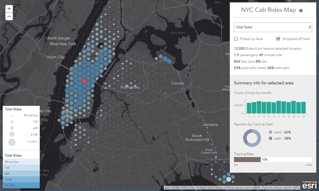 Visualize aggregated Yellow Cab trip data in New York City from July 2015 - June 2016.