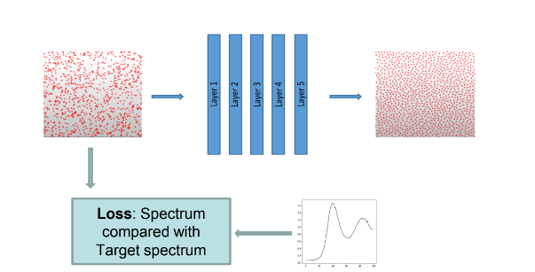 This is an experiment to achieve resampling of point sets in 2D using a neural network. The network is trained in an unsupervised way, with only the spectral characteristic curve. The training set is initialized with random Gaussian data, and using a simple MLP the point set can be moved towards Poisson distribution.