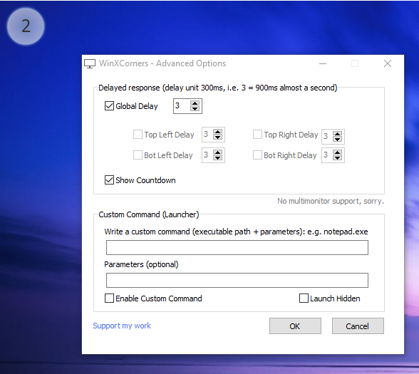 - WinXcorners works seamlessly on your primary monitor but secondary monitors haven't been tested throughfully, consider it partially supported.
