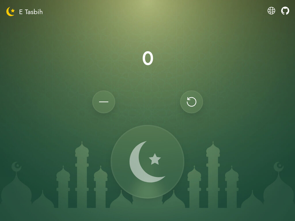 π E-Tasbih is an online tasbih counter that allows users to track and count their zikr (remembrances). This project is built only with HTML, CSS & JavaScript.