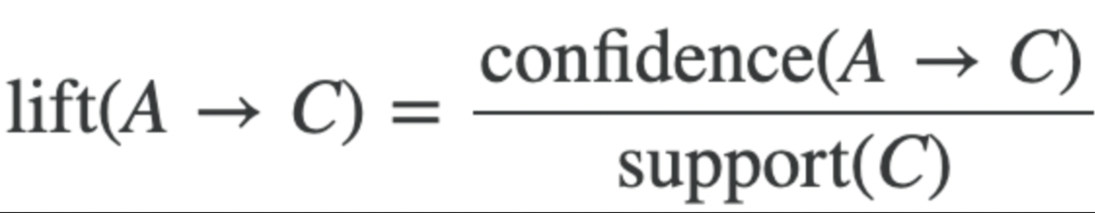- Support: shows the popularity of an item according to the number of times it appears in transactions